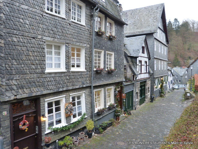 Montjoie (Monschau en allemand) est une ravissante bourgade nichée au fond d'une gorge sinueuse de la Rur (Roer).