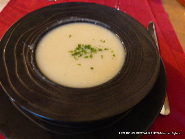 En entrée, Marc se régale d'un velouté aux asperges! Il faut en profiter, c'est encore la saison des asperges.