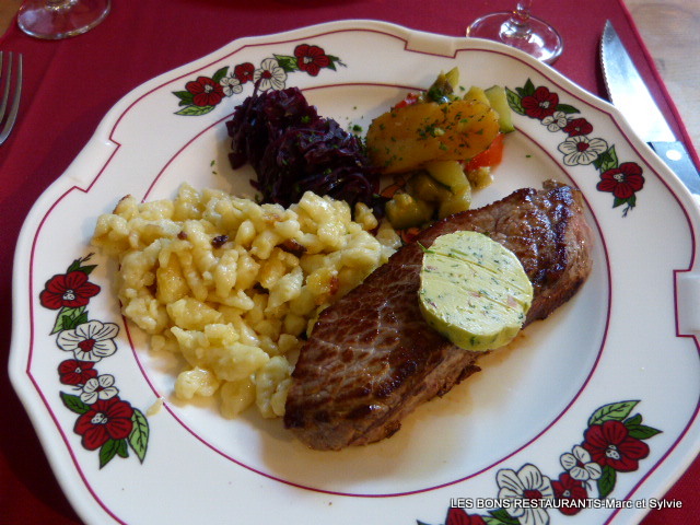 Pour ma part, encore dans la tradition, je choisis du coq au vin servi avec, bien sûr, des spätzle.
