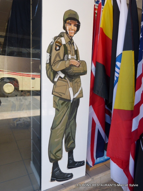 À l'occasion du 75e anniversaire du débarquement, le peintre Pascal Falisse a peint sur les vitrines des commerces de la région des dessins en lien avec la libération et le débarquement.