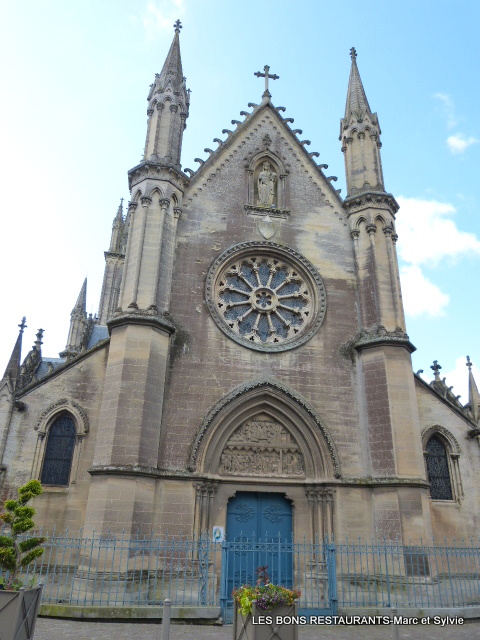 (15 clichés) L'édifice fut construit entre 1854 et 1878 dans le style néo-gothique normand, au centre de la cité, sur des plans de Jacques-Eugène Barthélémy, un architecte rouennais qui avait conçu la Basilique Notre-Dame de Bonsecours près de Rouen.