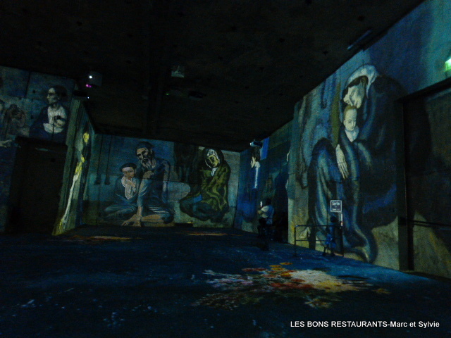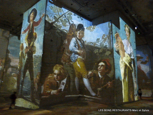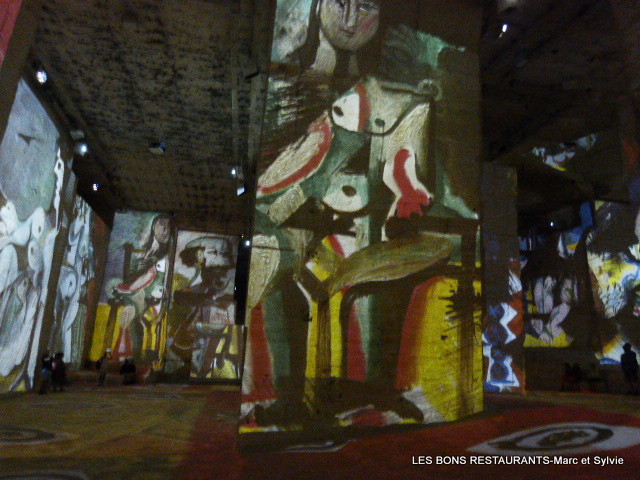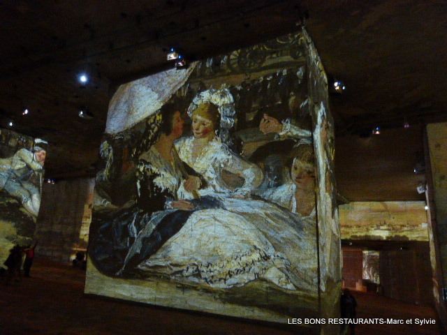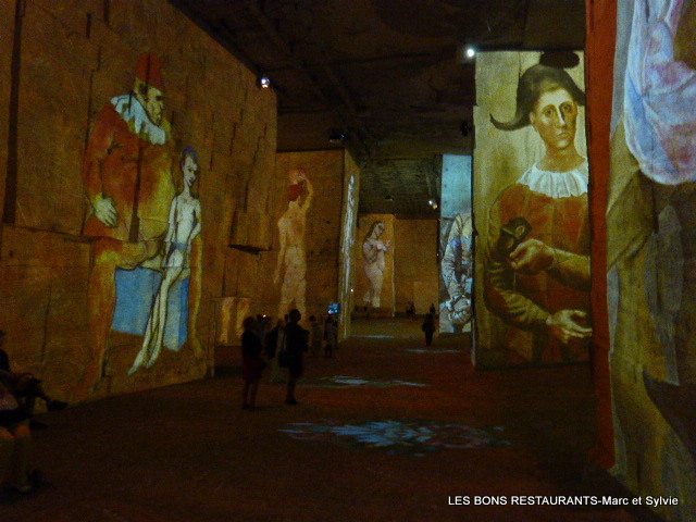 L'exposition du moment était "Picasso et les maîtres espagnols"! Les chefs-d’oeuvre numérisés de Picasso, Goya ou encore Sorolla, dialoguent en musique sur les immenses surfaces calcaires des Carrières.