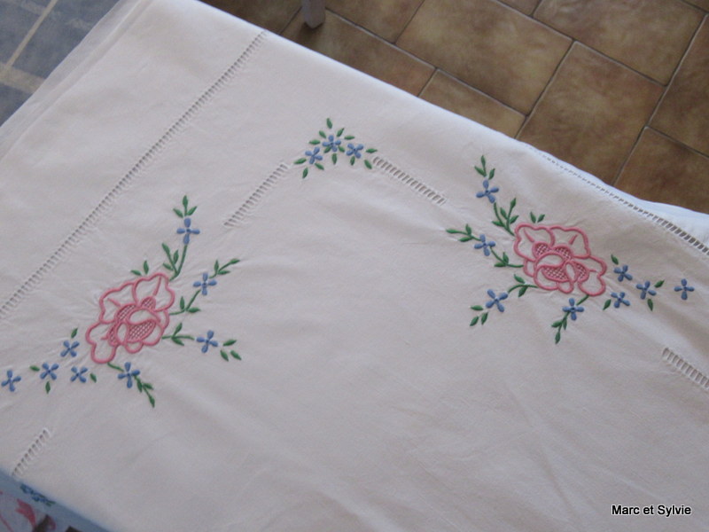 Un drap brodé à mes initiales....Sylvie M.....(nom de jeune fille)!