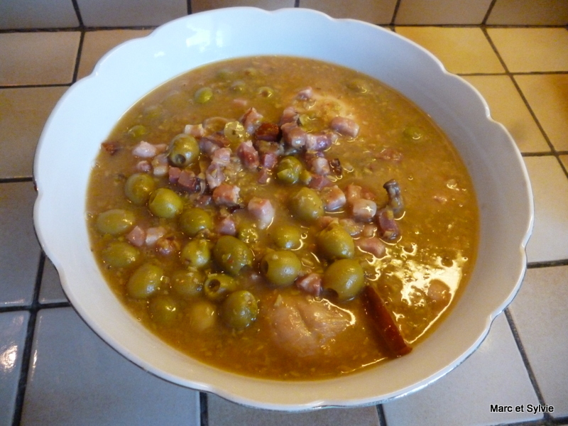 Hachez la moitié des olives et ajoutez-les dans la cocotte.