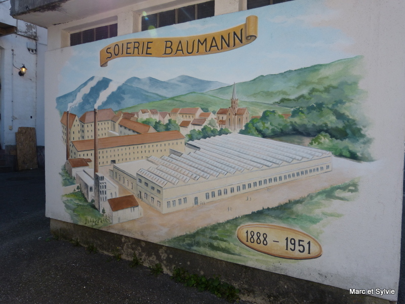 Une oeuvre qui rapelle des souvenirs d'antan, quand la soierie Baumann - Aîné tournait à plein régime. Église Saint-Maurice !