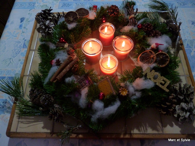 Sur la couronne, on place quatre bougies. Chaque dimanche de l'Avent, nous avons allumé une bougie de plus. Plus la fête approche, plus il y a de lumière.
