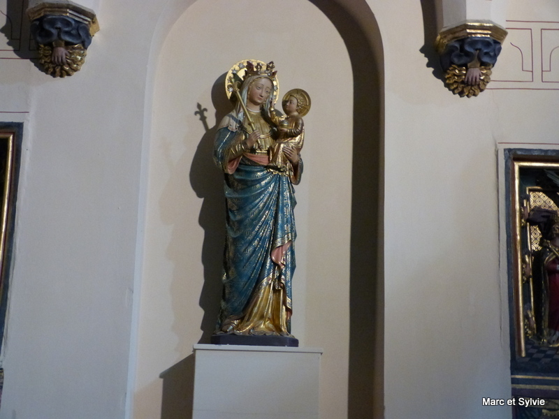 La Vierge et l'enfant est représentée de nombreuses fois dans cet édifice.