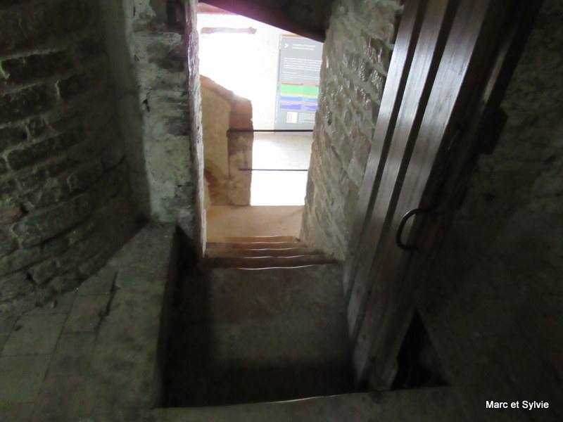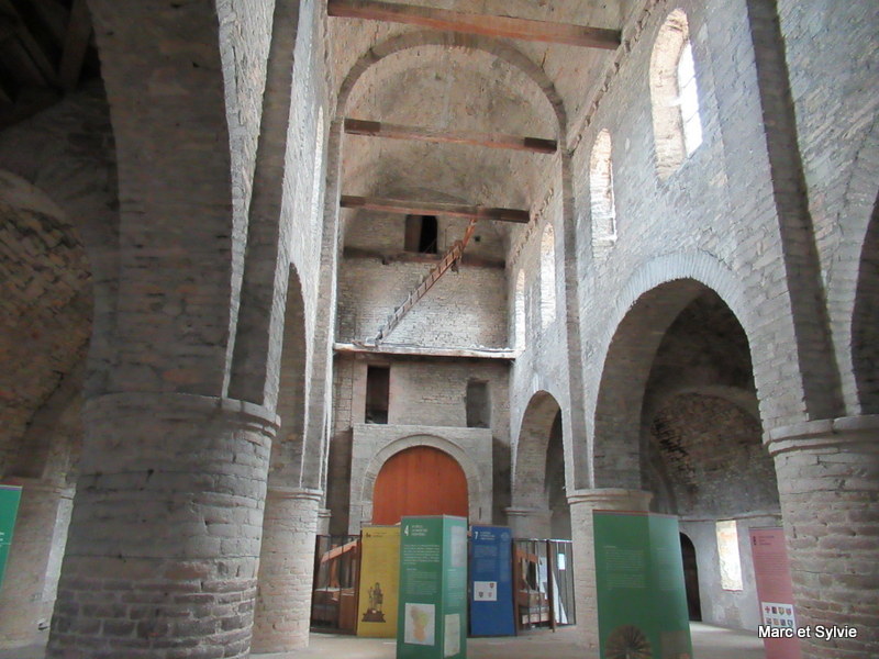 Les poutres de bois encastrées en travers de la nef sur le haut des murs maintiennent la poussée de la voute depuis plus de 900 ans.