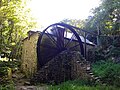 En 1878, pour profiter au mieux de la force de sa chute d'eau, le meunier transforme son moulin en le dotant d'une roue à augets de 8 m de diamètre qui est soutenue par le triple escalier extérieur.