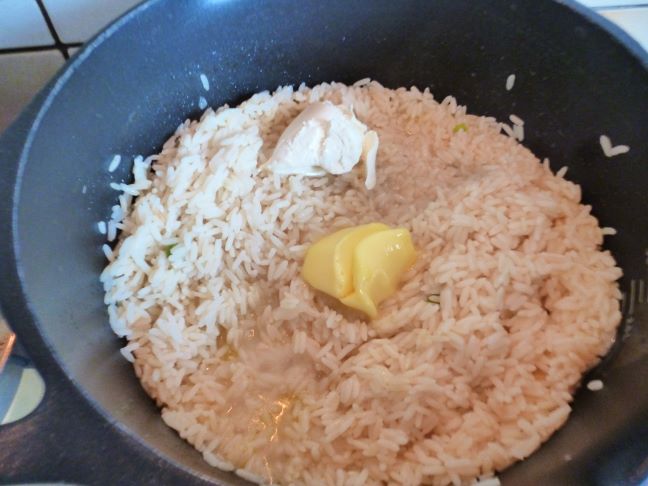 Incorporez le bouillon louche par louche jusqu'à ce que le riz soit cuit.