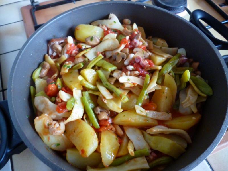 POÊLÉE HARICOTS PLATS POMMES DE TERRE CHAMPIGNONS et TOMATES |