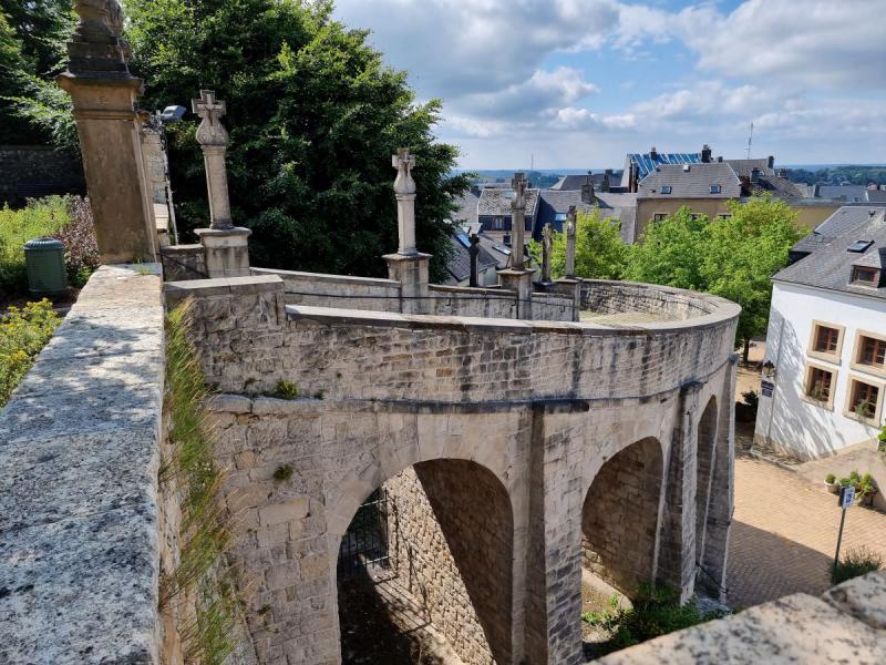 Le château du premier comte d'Arlon, Waleran, fut érigé à cet endroit au 11e siècle, puis détruit par les troupes du duc de Guise en 1558, avec le reste des remparts de la ville. Vous pouvez voir ou revoir notre balade à Arlon depuis le début sur ce lien ! (12 clichés) ![]() L'église fut érigée en 1626 par des Pères Capucins, sur les ruines de l'ancien château comtal.