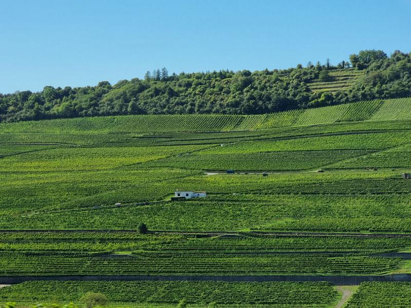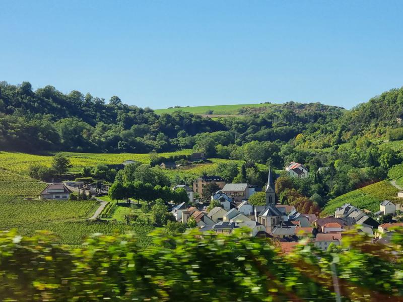 Nous sommes en Allemagne. Nous traversons de nombreuses localités viticoles connues et, sur ma droite, de l'autre côté de la Moselle, les vignes luxembourgeoises. ![]() Je ne me trompe pas en apercevant déjà quelques voitures et camionnettes dans les vignes.....ça sent les vendanges !