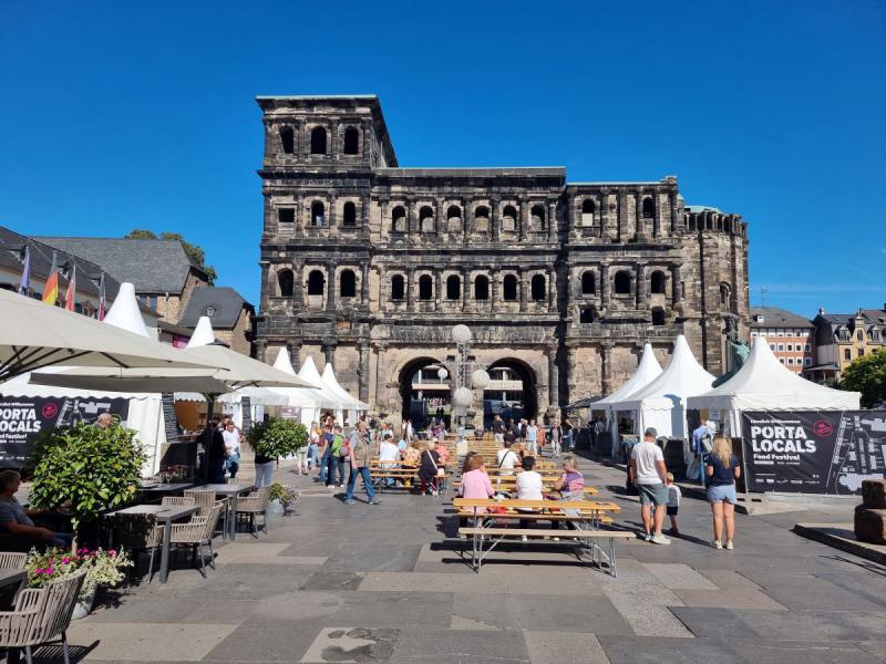 Hier, nous avons décidé de profiter de cette belle journée ensoleillée pour aller nous y balader. Trèves est une ville du sud-ouest de l'Allemagne, située dans la région viticole de la Moselle, proche de la frontière luxembourgeoise. Fondée par les Romains, elle possède plusieurs structures romaines bien conservées comme la porte fortifiée "Porta Nigra". Pendant trois jours, du vendredi 19 au dimanche 21 septembre, le festival local de soul food PORTA LOCALS sera présenté pour la 3ème fois au pied de la Porta Nigra. Ce festival propose une grande variété et une large gamme de gastronomie locale et régionale dans une atmosphère attrayante. Cet article servira de récapitulatif à cette journée ! -Balade en ville (ici) -Restaurant-brasserie Zur Sim (sur ce lien) Vous pouvez voir ou revoir toutes nos balades allemandes en cliquant sur ce lien! (10 clichés) ![]() Nous parcourrons la vieille-ville tranquillement et nous débutons la balade par la maison Natale de Karl Marx !