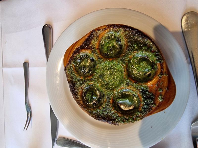 Les entrées arrivent et nous nous régalons tous devant nos assiettes ! Ici, Patrick savoure des escargots à l'alsacienne.