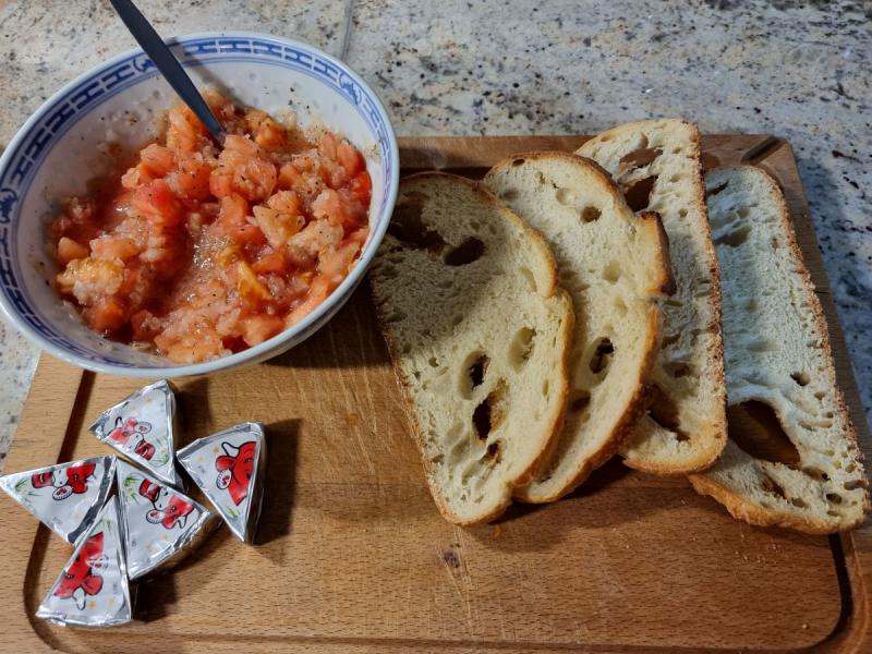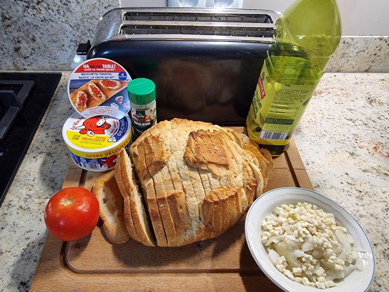 Aujourd'hui, je me suis laissée séduire par la recette d'une bruschetta vue sur un paquet de "Vache qui rit" !