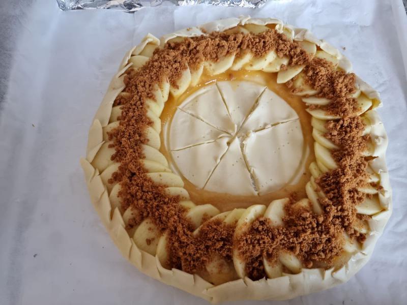 Rabattez les bords de la pâte feuilletée sur les pommes.