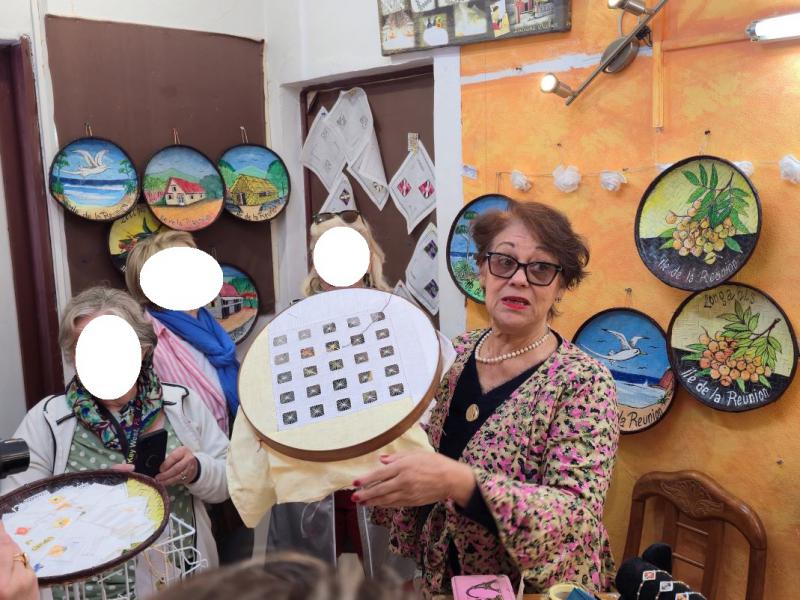 Une halte chez madame Techer, l'une des brodeuses du cirque est l'occasion de découvrir un artisanat réputé et fidèlement perpétué depuis plus d'un siècle, les fameux "jours de Cilaos".