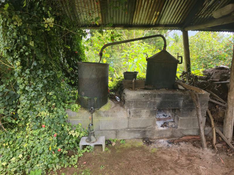 Sur les routes pittoresques des hauts de La Réunion, et en revenant du belvédère du Maïdo, Nicolas et ses amis se sont arrêtés dans une distillerie d'huiles essentielles spécialisée dans l'essence de Géranium Rosat ou d'Eucalyptus.