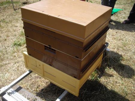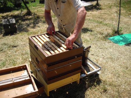 Au printemps et jusqu'à la récolte, l'apiculteur rajoute un deuxième étage: c'est le "grenier à miel".