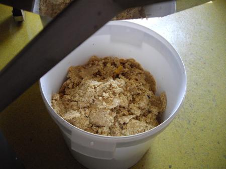 Le miel est récupéré dans une cuve à l'aide de tuyau.