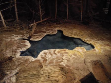 Les teintes opalescentes de ces eaux thermales sont dues à la forte concentration en silice.