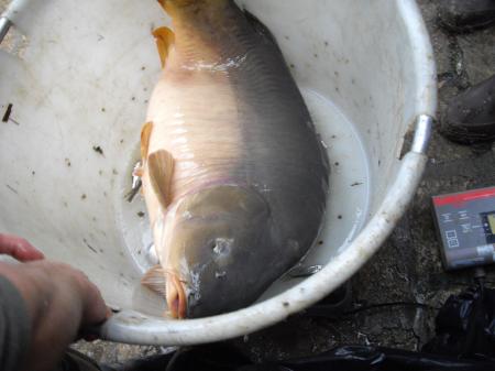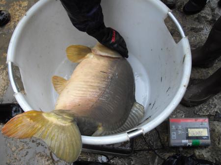 Cet après-midi, une carpe de 22 kilos s'est laissée prendre dans les mailles du filet.