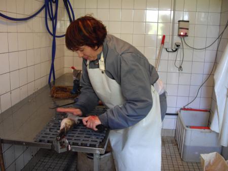 Une jeune dame, bien sympathique nous écaille le poisson et nous le vide.