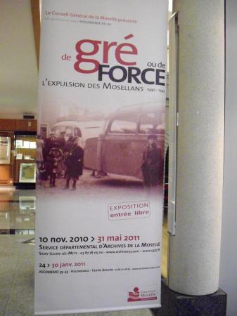 Cette exposition se déroule depuis novembre 2010 et continue jusqu'au 31 mai 2011. Elle se situe aux Archives de la Moselle, allée du château à Saint-Julien-lès-Metz(57).