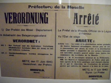 Cette affiche, qui est encore bilingue à cette époque, montre la prise en main immédiate de l'administration locale par les allemands.