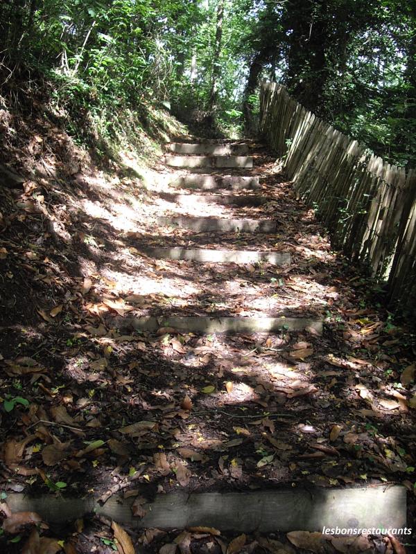 C'est dans cette maison que se trouvait le fournil destiné à cuire le pain. Cette ruine est un point de repère sur notre parcours, qui je dois l'avouer n'est pas très explicite... Des escaliers s'offrent à nous...