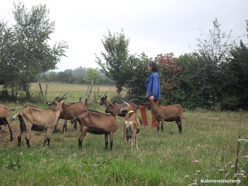 Les chèvres sont rassemblées, il est l'heure de les rentrer pour la traite.