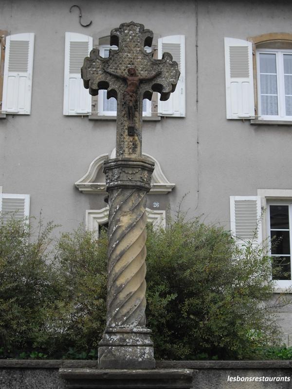 Cette croix, située devant l'église de Haute-Kontz, commémore le jubilé de 1875.