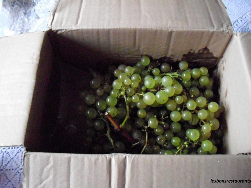 Bien emballées dans du papier journal et colmatées par des poches d'air...de superbes grappes de raisins...