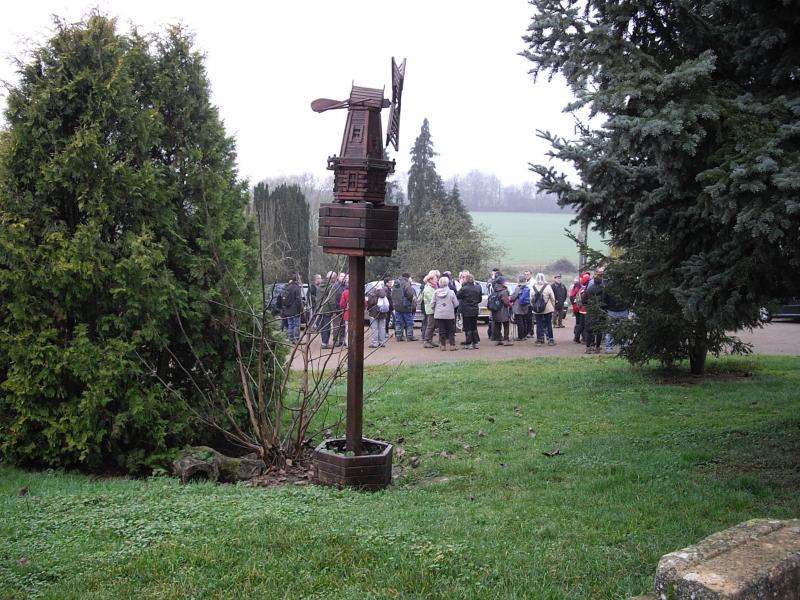 Pour cette sortie avec l'ANR, nous avions rendez-vous sur le parking de la ferme-auberge "Chantereine" à Verneville (voir le lien). Vernéville est une commune située dans le département de la Moselle. Fief de l'évêché de Metz, Verneville dépendait de l'ancien Val de Metz et possédait une seigneurie avec un château fort. Alors que tout ce petit monde s'assemble, nous nous amusons avec le chien de la ferme. Le signal du départ retentit et, déjà, dans la brume du matin, les rencontres sont sympathiques.