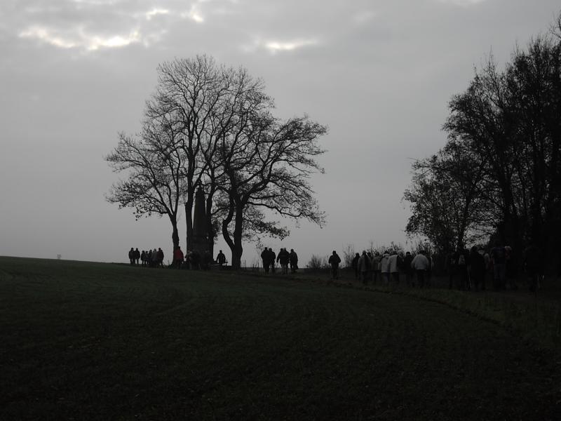 Tout au long de notre promenade, des monuments sont là pour nous le rappeler. La balade sur le plateau nous fait traverser des champs cultivés.