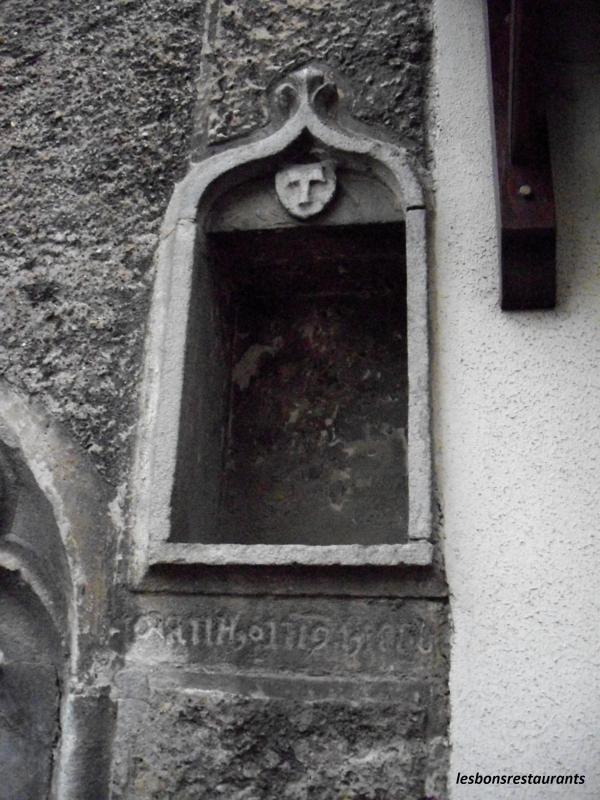 Cette fenêtre, à présent fermée, servait de passage sur l'extérieur. On apperçoit le symbole teutonique sur le dessus de la fenêtre. L’ordre de la Maison de Sainte-Marie-des-Teutoniques, plus connu sous le nom d’ordre des Chevaliers teutoniques ou de maison des chevaliers de l'hôpital de Sainte-Marie-des-Teutoniques à Jérusalem est un ordre militaire chrétien issu du Moyen Âge. Nos pas nous emmènent le long des rues et, sur un coin de maison, j'ai pu photographier une superbe croix de Lorraine.