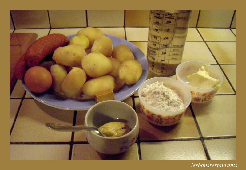 Le temps de faire cuire vos pommes de terre à la cocotte minute, vous préparez une sauce avec le beurre, la farine, le bouillon cube et 1/2 litre d'eau.