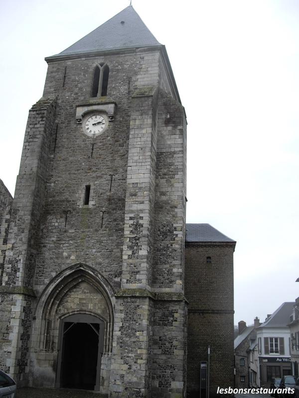 Son existence est fort ancienne. L'église primitive daterait du 12e siècle. En 1475 l’église est entièrement incendiée sous l’ordre du Roi Louis XI afin que la Ville ne soit pas livrée aux Anglais.