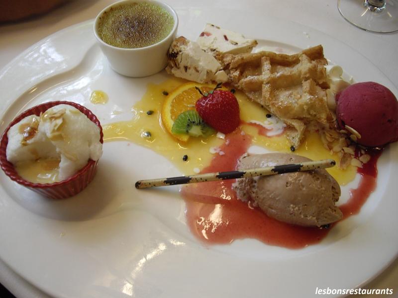 Les mousses aux trois chocolats, coulis à l'orange pour moi.