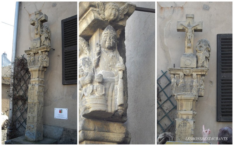 Ce dernier bildstock a été érigé en 1623 par Michel et Élisabeth Batges. Nous pouvons encore apercevoir la Vierge, saint-Pierre, saint-Michel et sainte-Élisabeth. Merci Monique pour cette très belle balade. Je vous retrouve demain pour la légende des trois clériaux. Bonne journée!