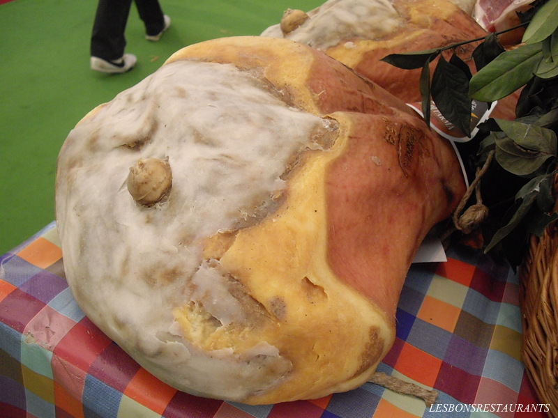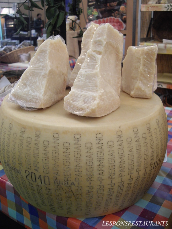 Nos amis sont chaque année présents et nous présentent leurs spécialités. Cela commence par un délicieux fromage...Vous connaissez? C'est celui que l'on râpe et que l'on aime déguster sur les pâtes! Ah Oui! J'oubliais....Le fameux jambon de Parme!
