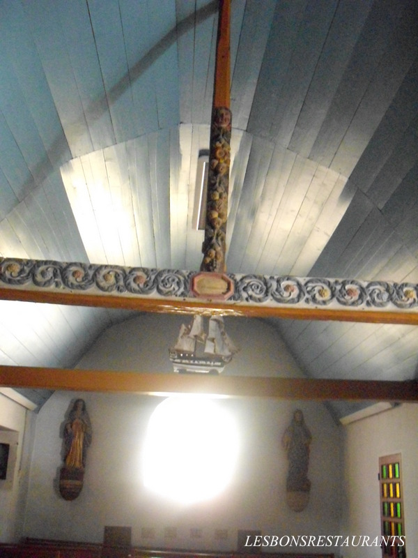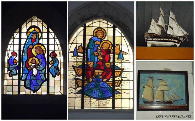 De très beaux vitraux ornent cette chapelle et des ex-votos nous rappellent la dévotion des marins de la région à Sainte-Anne.