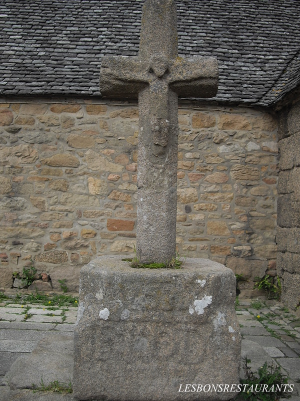 C'est tout ce qu'il reste de la grande croix, issue des ateliers d'Yves Hernot de Lannion et frappée par la foudre en 1912. La chapelle est fondée par Jean de Lannion, seigneur des Aubays.