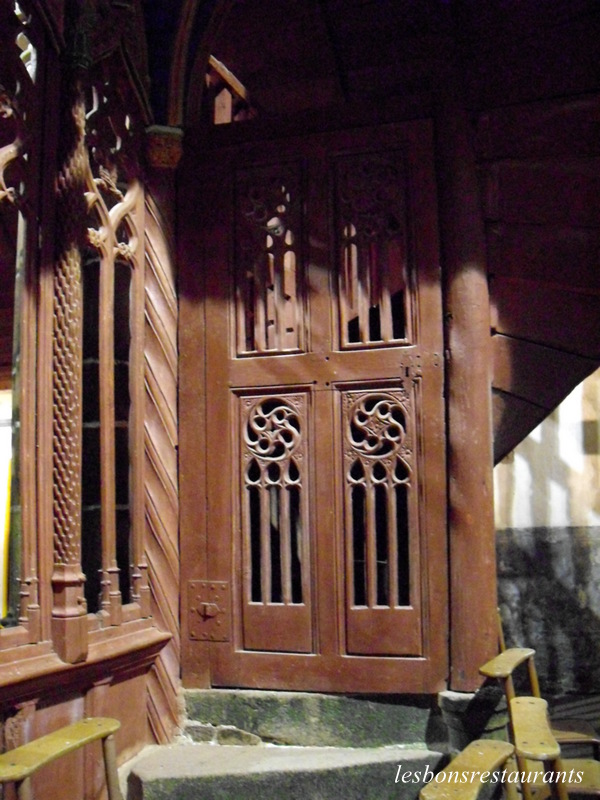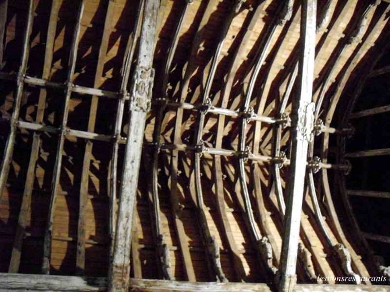 Nous avons découvert un charmant petit oratoire niché dans un coin retiré de la campagne (voir le lien). Nous nous sommes arrêtés, hier, devant la porte d'entrée! En la poussant, nous avons découvert ce superbe Jubé! Il mérite une visite de cette chapelle à lui tout seul. Je lui consacrerai un article complet demain. Cliquez sur les photos pour les agrandir! La charpente de voûte a la forme d'une coque de bateau renversée.