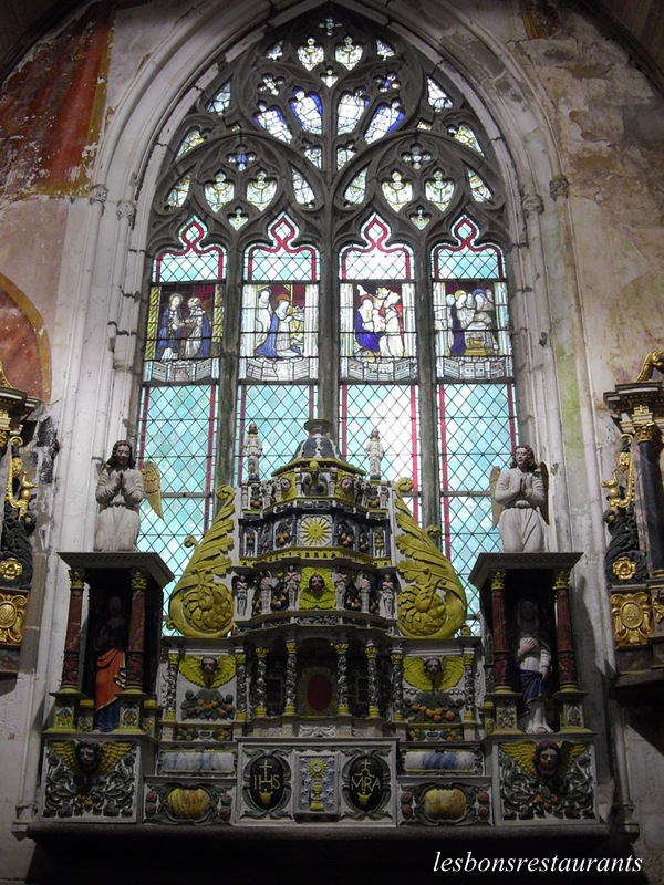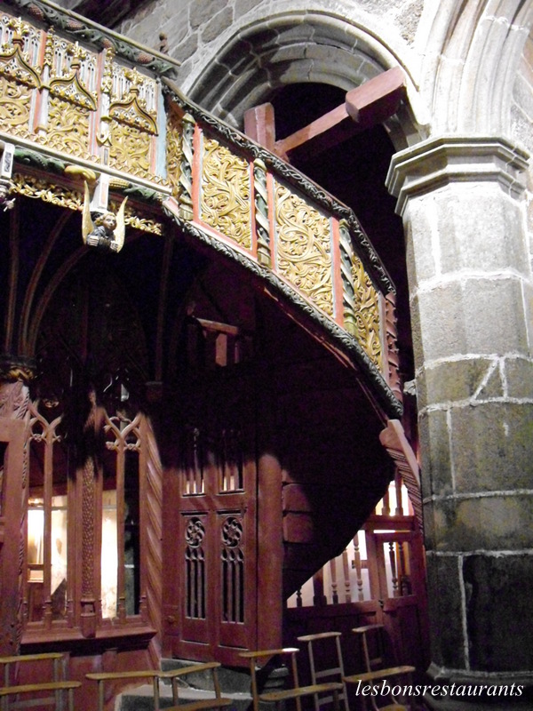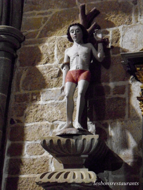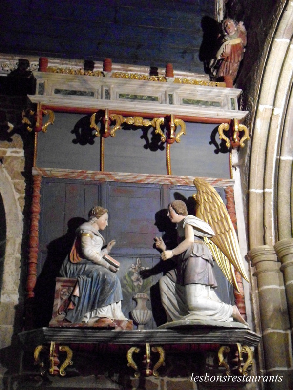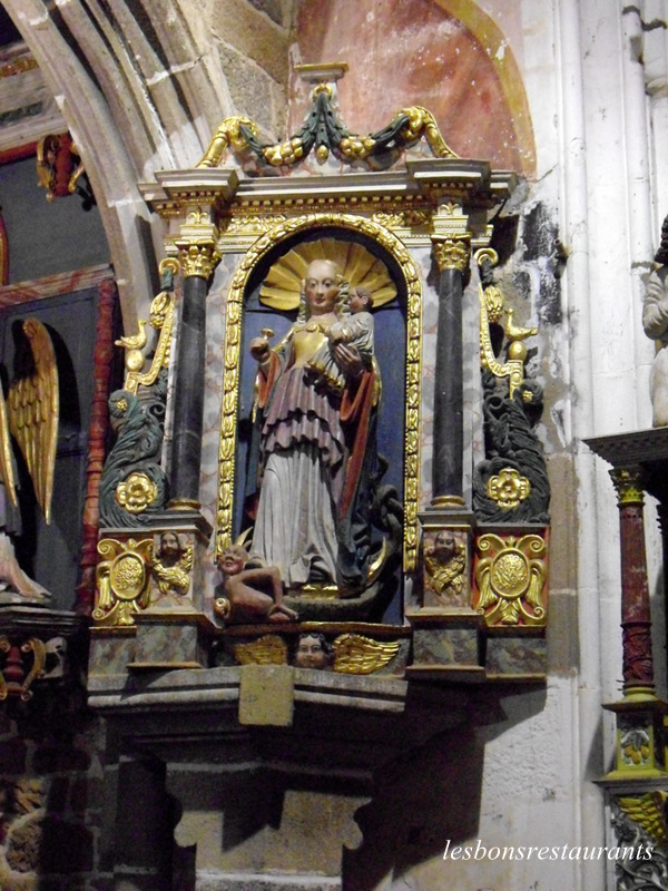 Elle est l'œuvre de charpentiers de marine et elle comprend des personnages sculptés dans le style des figures de proue des navires de l'époque. Nous passons par la porte du Jubé. Nous découvrons une multitude de retable, de statues et de tableau...Une merveille!