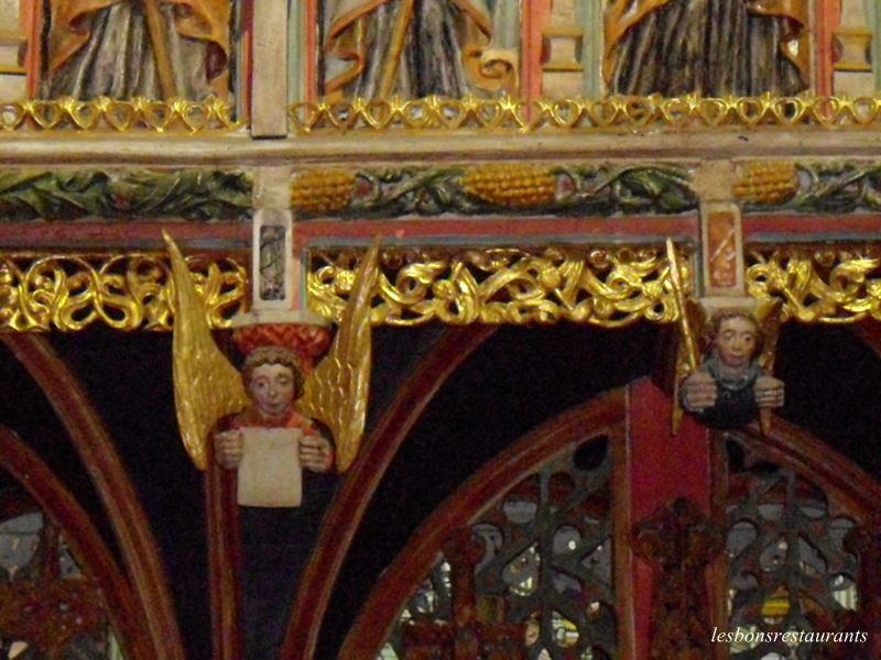 La frise située en dessous de la tribune est décorée d'anges qui portent les attributs de la passion.