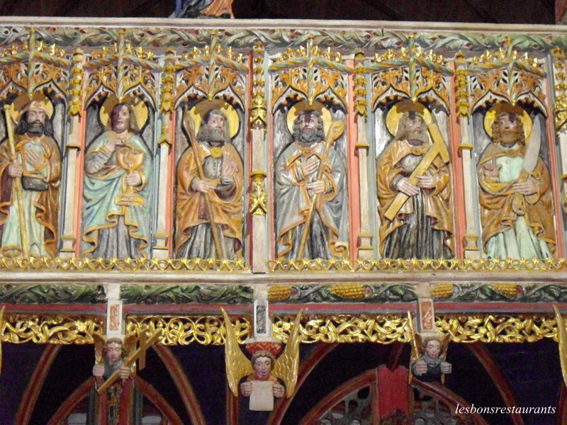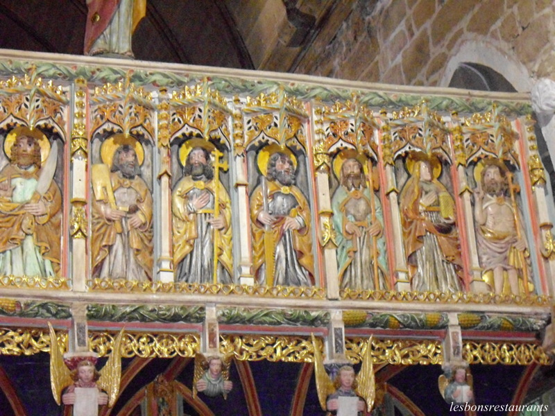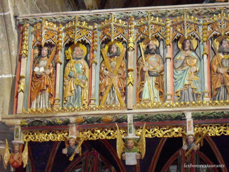Ils représentent le Christ, les douze apôtres, sainte-Barbe et sainte Madeleine. Au-dessus de la tribune on aperçoit la Vierge et saint-Jean.