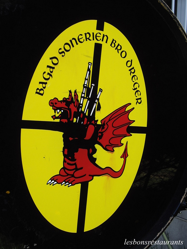 -une croix noire sur fond jaune, emblème de Saint-Yves, né à Tréguier et patron de la Bretagne. -un dragon rouge, emblème de saint-Tugdual, le saint patron du Trégor. Créé en 1983 à Perros-Guirec par une dizaine d'anciens sonneurs de la région, le bagad progresse rapidement en effectif et en qualité.