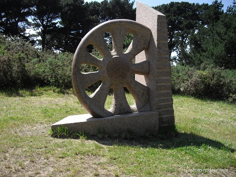 Cette roue en granite rose de La Clarté représente la Vie au soleil de Hervé Quéré.